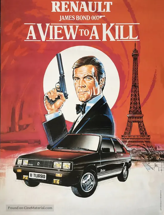 A View to a Kill is the fourteenth James Bond film in the Eon Productions series, the third to be directed by John Glen and the seventh and final installment to star Roger Moore, premiering on April 22, 1985. Also notable for being the final Bond film to feature Lois Maxwell as Moneypenny. The only thing this movie uses from the Ian Fleming.
