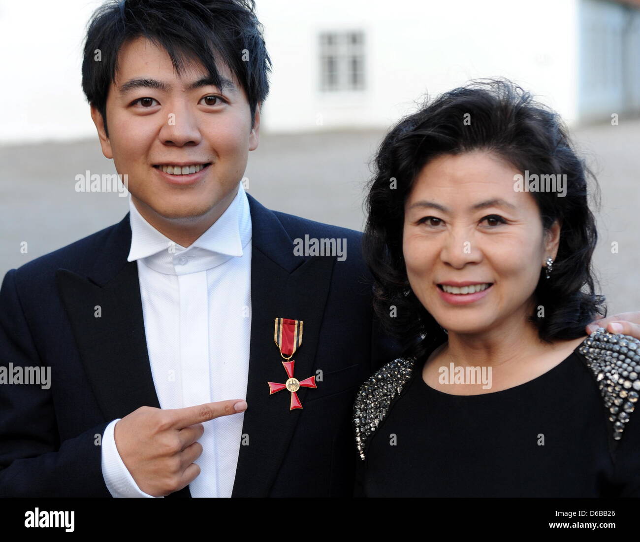 Chinese pianist Lang Lang poses with his mother Zhou Xiulan after he received the Order of Merit