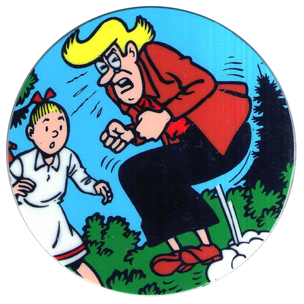 Suske en Wiske provides example of:. Abnormal Limb Rotation Range: Characters sometimes do impossible things with their arms and legs.Usually for one gag. Action Mom: Tante Sidonia, despite being Suske and Wiske's adoptive mother.; Adventures in the Bible: "De Kale Kapper" (The Bald Barber); Agony of the Feet: in "De Bokkerijders" (The Buck Riders) Suske accidentally hits Sidonia's foot with a.